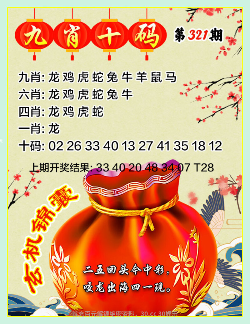 322期:春花秋月【家野两肖稳】已公开!